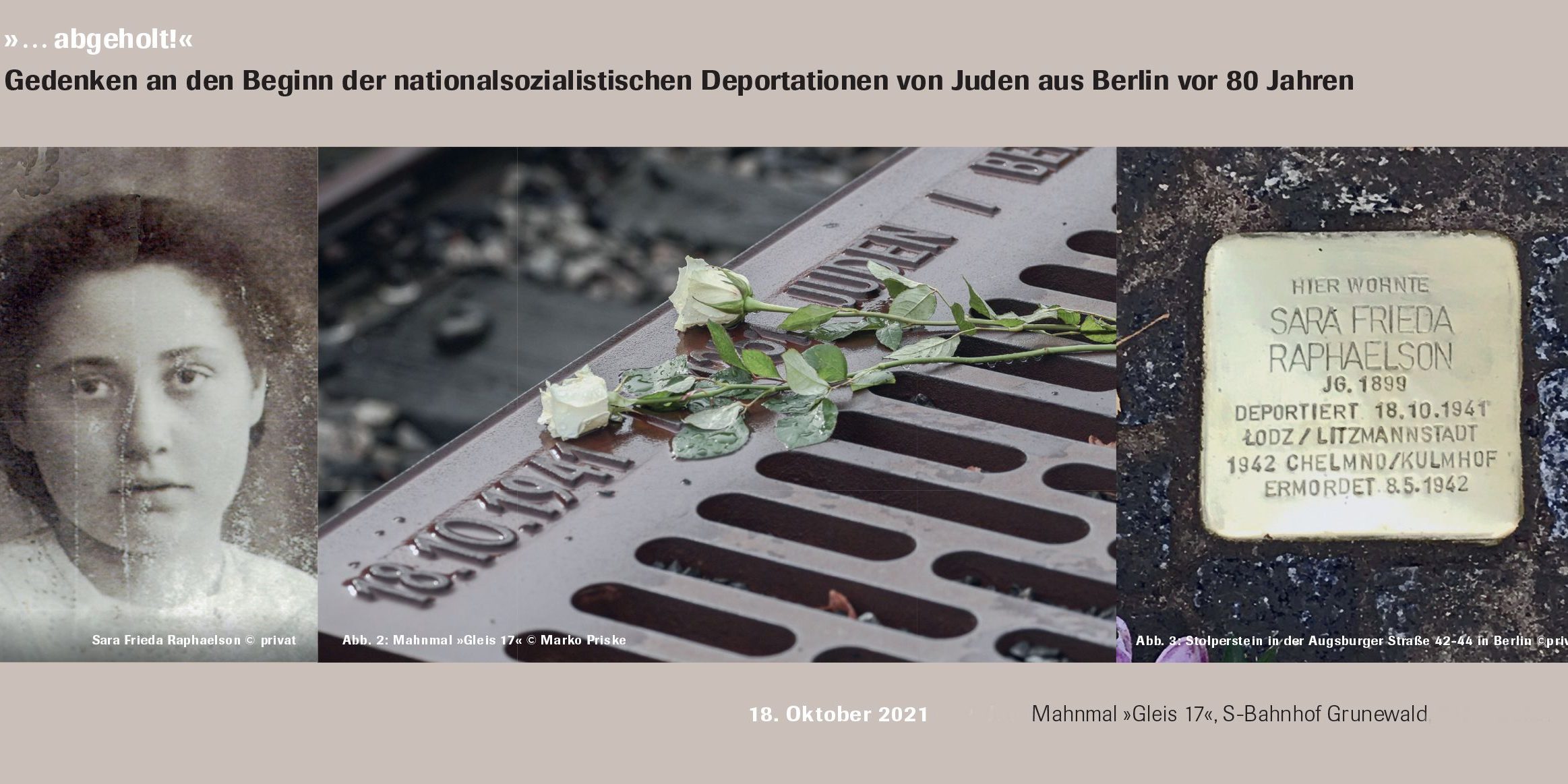 Die Ständige Konferenz der NS-Gedenkorte im Berliner Raum, das Land Berlin, die Jüdische Gemeinde zu Berlin, die Israelitische Synagogen-Gemeinde (Adass Jisroel) zu Berlin, die Inge Deutschkron Stiftung und die Deutsche Bahn Stiftung laden Sie und Ihre Freunde herzlich zur Gedenkveranstaltung am Mahnmal »Gleis 17« ein.