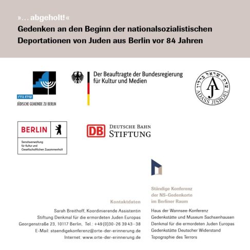 » … abgeholt!« Gedenken an den Beginn der nationalsozialistischen Deportationen von Juden aus Berlin vor 84 Jahren